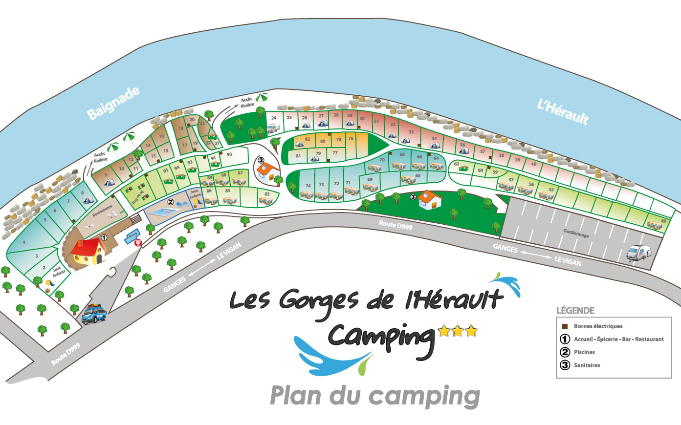 The campsite is on the verge of the Gard and of the Hérault. It lines the river the Hérault on 400 m length, offering beautiful private beaches and wilder corners, with beautiful rocks to dive.